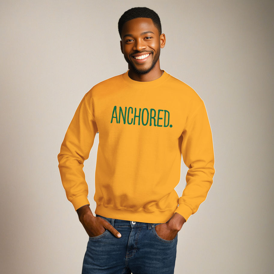The "Anchored" design represents steadfast faith amid life's storms. It's based on Hebrews 6:19: "We have this hope as an anchor for the soul, firm and secure." This garment serves as a powerful reminder that our hope in Christ keeps us stable and secure, regardless of circumstances, anchoring us firmly in God's unchanging truth and promises.